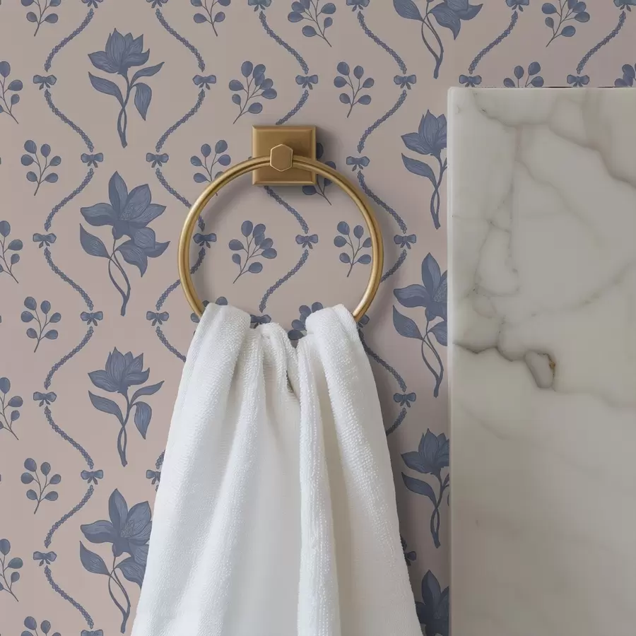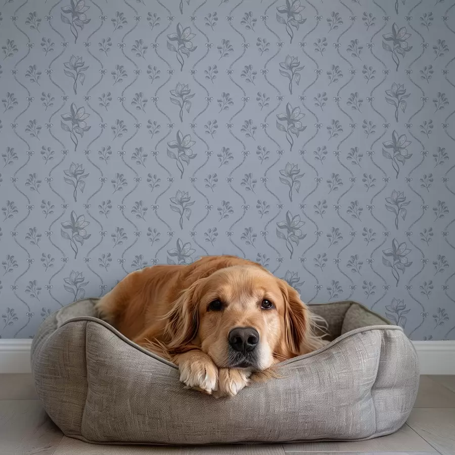Papier peint Petites fleurs et rubans dans une palette gris-bleu