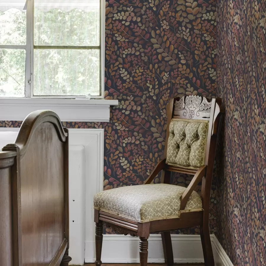 Papier peint Motif de forêt sombre avec des arbres aux couleurs chaudes