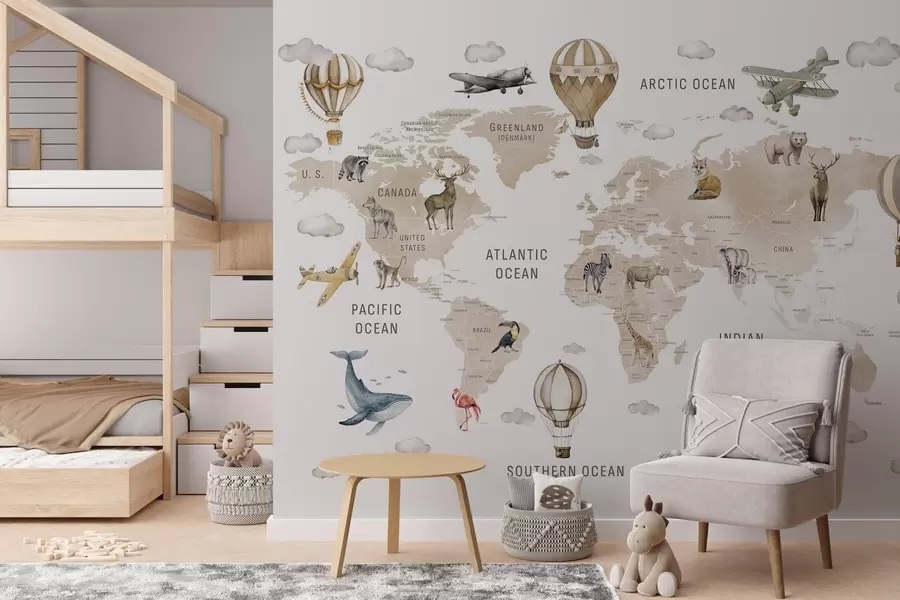 Papiers peints Forêt mignonne avec des animaux aux couleurs délicates